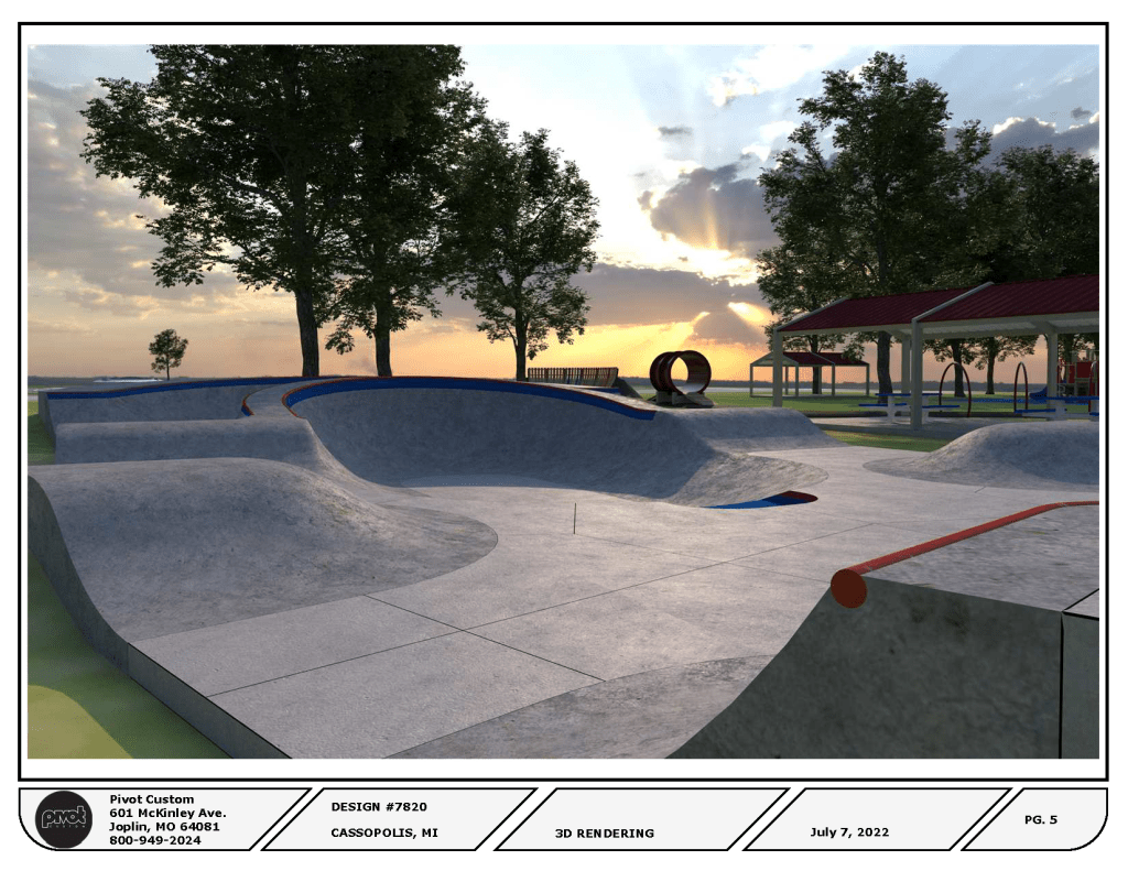 A poured in place concrete skate park is in the works at Clisbee Park! It will have a pump track and elements suitable for all ages and skill levels to use with skateboards, bikes, and rollerblades. Check out project renderings below.