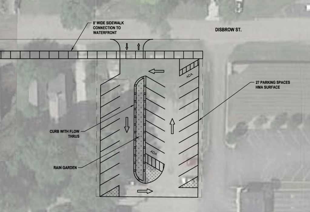 Proposed paving of existing village-owned lot on S Disbrow (behind Helping Hands, next to Fifth Third parking lot) to add 27 parking spots within walking distance of Stone Lake Beach.
